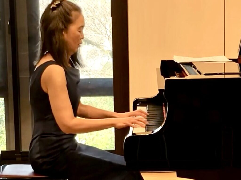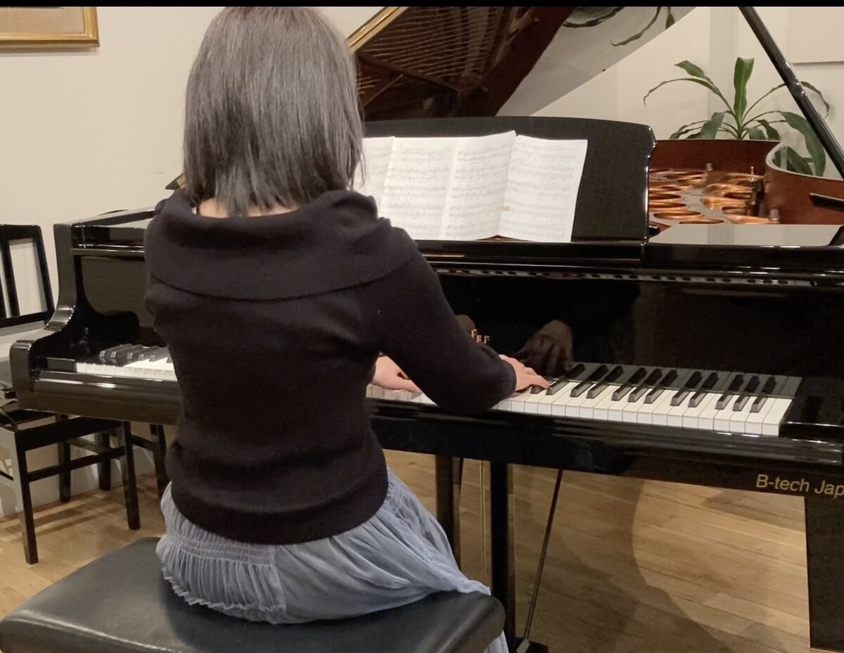 ピアノの音と体の動きを組み合わせながら