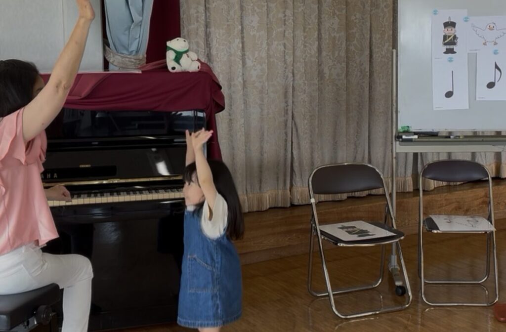 女の子は、お歌も上手、ピアノの音に合わせて手を上げて、体全体で表現できました。