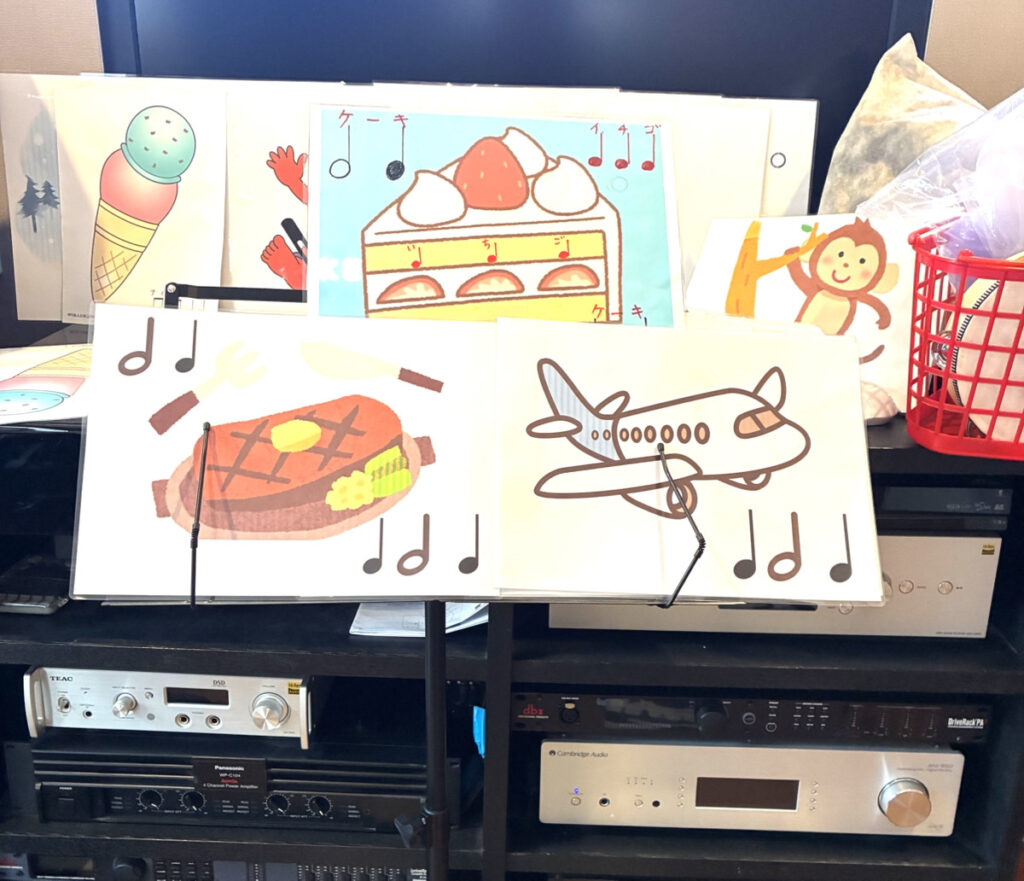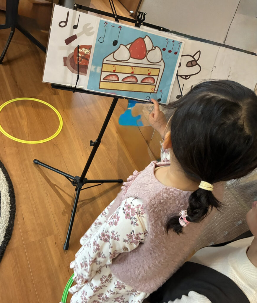 リトミックでは、言葉とリズム、絵を使い、音を体で感じ、見て想像する力を育てながら、音楽の土台をていねいに積み上げていきます。